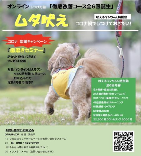 【ムダ吠え】徹底改善コース 6回が誕生「オンラインしつけ方塾」