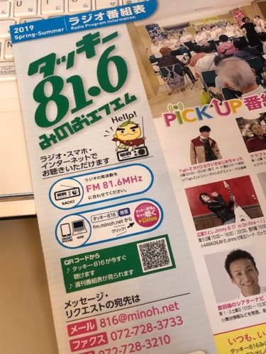 電話生放送【タッキー816みのおエフエム】に2019/04/24 朝9:30より出演させて頂きます
